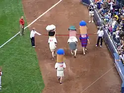 The Johnsonville Sausage Race (known as the Famous Racing Sausages or the Sausage Race) is a race of sausage mascots held during the middle of the sixth inning at every home game of the Milwaukee Brewers. The Sausage Race began as a promotion for the Klement's Sausage Company, located in Milwaukee, Wisconsin, whose sausages were served at American Family Field (and previously at Milwaukee County Stadium), the home of the Brewers. In 2021, Johnsonville sausages began being served at American Family Field.[1]