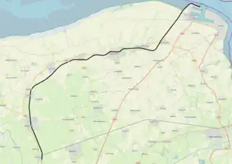 The Sauwerd–Roodeschool railway is a railway line in the Netherlands running from Sauwerd to Roodeschool, passing through Winsum, Warffum and Uithuizen. The line was opened in 1893.[1] Although the railway originally started in Sauwerd, train services have always started and terminated in Groningen. At 28 March 2018, an extra branch from Roodeschool to Eemshaven was opened.