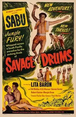 Savage Drums is a 1951 American adventure film produced and directed by William Berke and starring Sabu, with Lita Baron, Sid Melton and H.B. Warner. The film was released by low-budget producer Robert L. Lippert. Although Lippert had previously announced his films would be first features, this was one of a number of B movies he produced during the period.[1] The Indian-born actor Sabu had previously enjoyed fame as the star of several films produced by Alexander Korda.
