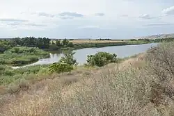 The wildlife of the island include mule deer, coyote, burrowing owl, and western diamondback rattlesnake; the island is primarily arid shrub steppe, with some wetland habitat by the shore of the river.