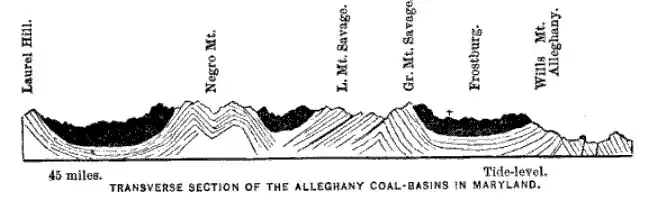 | Orogenies | Alleghenian orogeny (the western edge of the Allegheny Formation "shows along the eastern slope of Savage Mountain".) |
