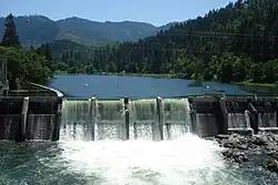 Savage Rapids Dam was an approximately 39-foot-high (12 m), 500-foot-long (150 m) irrigation diversion dam spanning the mainstem of the Rogue River in Josephine County, Oregon. The dam was demolished and removed in 2009.[1] Built in 1921 by the Grants Pass Irrigation District (GPID), the dam diverted water from the river to GPID's irrigation canals. Savage Rapids Dam did not fulfill other functions often associated with dams such as flood control, hydro-electric power, and managing inland waterways. The dam provided minor recreational benefits and provided habitat for certain migratory birds.