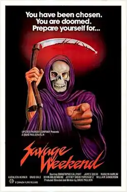 Savage Weekend was written and directed by David Paulsen, in his directorial debut.[5] The project originated after an investor who had agreed to fund a different film for Paulsen retracted the majority of the money he had promised, instead allotting $20,000.[5] With such a small budget in mind, Paulsen wrote an original screenplay for a horror film that could be made with few resources.[5] The screenplay was completed while Paulsen was staying in East Hampton, New York over a period of two weeks.[5] Paulsen stated that he fashioned the script around a variety of bizarre and extravagant murder sequences.[5]
