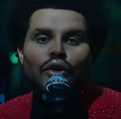 The song's debut live performance occurred during the American Music Awards of 2020 on November 22, 2020, where it was performed alongside the Kenny G remix of "In Your Eyes" in downtown Los Angeles.[41] In his performance, the Weeknd sported a bandaged look that continued the narrative of the visuals that he released for After Hours.[42]