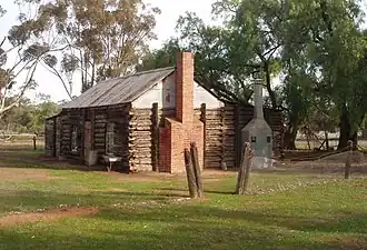 1876 - Selector's Hut: is an example of wattle and daub pioneering architecture, with the use of interlinked horizontal cypress pine logs, the gaps being filled with mud. Considered significant.[1]