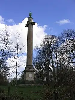 A stone column[4] some 90 feet (27 m) high was erected by Lord Ailesbury as an impressive viewpoint at the end of a vista from Tottenham House.