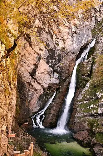{{cite book}}:|work=ignored (help) COBISS 17411 ISBN 86-11-14288-8 OCLC 36885531 - ^ Justi Carey, Roy Clark (May 11, 2015). "Walk 22 (Savica waterfall)". The Julian Alps of Slovenia: Mountain Walks and Short Treks. Cicerone Press Limited. ISBN 978-1-85284-7098. Archived from the original on 2017-07-22. Retrieved 2017-07-05.