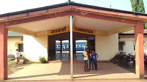 Sawarda railway station is a station on Konkan Railway . It is at a distance of 146.302 kilometres (90.9 mi) down from origin at Roha station. The preceding station on the line is Kamathe railway station and the next station is Aravali railway station .[ 1]