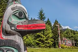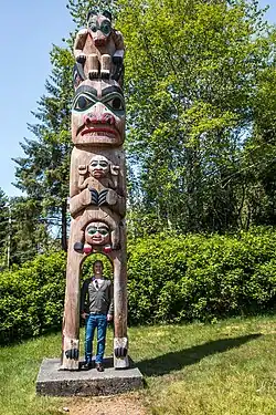 Saxman Totem Park is a public park in the city of Saxman, Alaska, just south of Ketchikan in southeastern Alaska. The park is home to a collection of totem poles, some of which are old poles relocated to this place from unoccupied Tlingit villages in the region, or were reconstructed by skilled Tlingit carvers under the auspices of the Civilian Conservation Corps in the 1930s. The poles originated in the communities of Old Tongass, Cat Island, Village Island, Pennock Island, and Fox Village. One of the carved items recovered from unoccupied villages is a marble statue of a grizzly bear.[2] The park was listed on the National Register of Historic Places in 1979.[1]