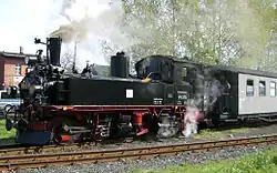 The Saxon IV K are narrow gauge, 0-4-4-0T Günther-Meyer type steam engines built for the Royal Saxon State Railways with a track gauge of 750 mm (2 ft 5+1⁄2 in). A total of 96 were built between 1892 and 1921, making the Saxon IV K the most numerous narrow gauge locomotive in Germany. In 1925 the Deutsche Reichsbahn grouped these engines into their DRG Class 99.51–60.
