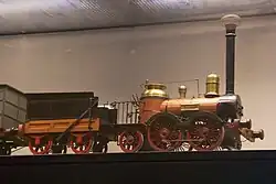 Like the Adler, few original design documents existed at that time from which the replica could be built. The basis of the new design drew heavily on a blueprint of the original drawings from 1838. The dimensions and technical data were derived from the book published in 1839 by NNW Meissner.[3] Building a replica using the original manufacturing techniques was not possible. In building the boiler current regulations had to be followed. The steam engine was a major headache. Originally the Saxonia only had a simple lever valve gear which did not enable any kind of steam admission control. For the replica Saxonia a Stephenson valve gear with open rods was planned.