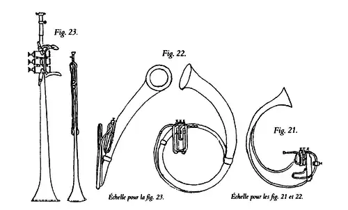 - ^ Berlioz, Hector (1855). Grand Traité d'Instrumentation et d'Orchestration Modernes. Paris: Schonenberger. p. 234. I am assuming that Halévy's "sax-horn au pistons en Si♭" and "Sax-horn contre Alto en Si♭" are the same instrument.