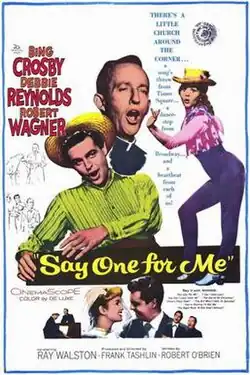 Say One For Me is a 1959 American comedy musical film directed by Frank Tashlin and starring Bing Crosby, Debbie Reynolds and Robert Wagner.[4] Stella Stevens made her film debut in Say One for Me and received the Golden Globe Award in 1960 for New Star of the Year-Actress for this film.