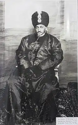 Sayid Abdullah Khan (Turki and Persian: سید عبدالله خان; 1873–1933) was the last Khan of Khiva of the Khongirad (Qungrat) dynasty, from 1 October 1918 until 1 February 1920. His father was Muhammad Rahim Khan II.