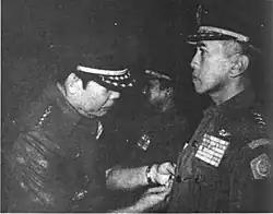 Sayidiman was inaugurated as the Commander of the Hasanuddin Military Region on 3 August 1968, replacing Solichin GP, the previous commander.[21] Sayidiman's appointment as a commander of a military region marked his service in a total of four different military fields: combat, education, staff, and territorial.[22] Under his command, the military region launched Operation Lighting (Operasi Kilat) to exterminate communists rebels who sided with the 30 September movement.[23] The operation resulted in the execution of Marcus Girat, the leader of communist guerilla groups in the Eastern Indonesia region and the arrest of Muhammad Kasim,[23] the incumbent regent of Buton who was accused of being involved in the movement.[24] Sayidiman ended his tenure in the region on 16 March 1970 and was replaced by Abdul Azis Bustam.[25]