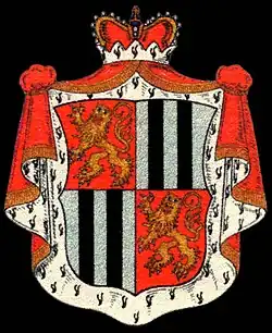 The branch had no territorial holdings of its own and as such had no Imperial immediacy in the Holy Roman Empire. Later generations flourished as officers for the Czar of Russia.[1] The family was raised to the rank of Prince in 1834 by King Frederick William III of Prussia. After their return to Germany in the first half of the 19th century, this line of the family came in to possession of Sayn Castle and Sayn Palace in Bendorf and due to that they officially became Princes of Sayn-Wittgenstein-Sayn in 1861.[2] With the revolutions and wars of the 20th century, descendants were dispersed throughout Europe and North America.