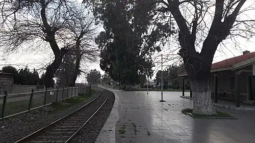 Sazlıköy railway station (Turkish: Sazlıköy istasyonu) is a railway station in Sazlı, Turkey, just north of Söke. The station is located in the northern part of the town, adjacent to the D.525 state highway. TCDD Taşımacılık operates regional rail service from Söke to İzmir, Denizli and Nazilli, totalling five trains per day, in each direction.[1] Sazlıköy station opened on 1 December 1890 by the Ottoman Railway Company along with the branch line to Söke.[2]
