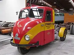 The Scammell Scarab was the successor to the Scammell Mechanical Horse and production began in 1948.[1] Its name is commonly believed to be derived from the rounded bonnet that resembled the elytra (wing covers) of a Scarab beetle, but the name really comes from a more conventional source. It was a portmanteau of Scammell and the Arab horse which the Mechanical Horse replaced in British Railways usage.[2] The official Scammell Lorries advertisement film makes reference to this. It was extremely popular with British Railways and other companies which made deliveries within built-up areas. The Ministry of Defence also used the Scarab and trailers for predominantly internal transport on large military bases.[2]