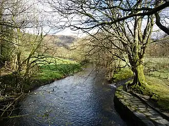 It flows under High Sweden Bridge,[1] a 17th-century packhorse bridge, past High Sweden Coppice and Low Sweden Coppice, before turning west for a short distance north of Papermill Coppice, and turning south to join the River Rothay east of Ambleside. The Rothay flows only a short distance south before emptying into Windermere, the largest natural lake in England.[2]
