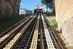 The funicular is operated by two cars. In its original operating configuration, the funicular used steam power generated by equipment sited roughly 59 feet (18 m) beneath the top station; this gave the driver no direct view of the cars. To minimise the risk posed by potential equipment failure, each car is equipped with a safety brake system that works in conjunction with a rail located in the centre of each track.[1]