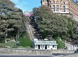 The British town of Scarborough has had a total of five cliff railways, or funiculars, two of which are presently operational. The town is home to the first funicular railway in the United Kingdom.[1]