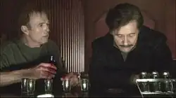 Tigh interrogates Boomer in the brig. Boomer, horrified at her own betrayal, urges him to kill her, but he refuses. A medic is forced to operate on Adama in Dr. Cottle's absence. In a sequence of flashbacks, Tigh recalls how Adama got Tigh back into the Colonial Fleet following the First Cylon War.[1]