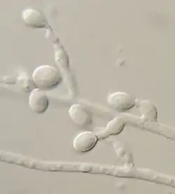 | Photomicrograph of Scedosporium prolificans colony growing on Modified Leonian's agar | |