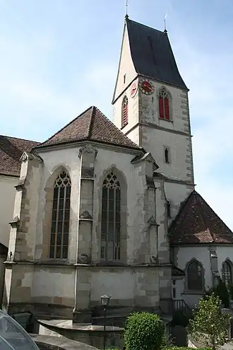 After many years Ulrich I, Count of Lenzburg, restored the abbey to prosperity and a sound economic footing by numerous gifts of property. Also, by exchanges of land and rights of patronage he created a stable and unified ecclesiastical and parochial structure in the foundation's immediate vicinity. It was presumably at this time that the dedication was altered from the "Holy Cross" to Saint Sebastian.