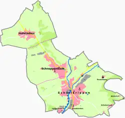 Schöllkrippen Ortsteil consists of the following Orte: Ernstkirchen, Langenborn, Reuschberg, Röderhof, Schabernack and Schöllkrippen proper.