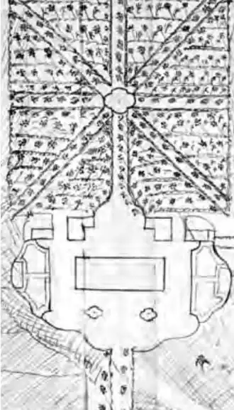 Prince Elector Franz Georg von Schönborn constructed Schloss Schönbornslust as a hunting lodge between 1748 and 1752.[1][2] The design was based on plans by Balthasar Neumann and the construction was supervised by his pupil Johanness Seiz.[1][2] The electoral summer residence was completed in baroque style.[1] It consisted of a single winged building with 21 windows on the front, an orangery and some smaller auxiliary buildings.[1][2] It was the last completed palace of Balthasar Neumann.[1][2]