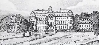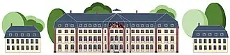 After the start of the French Revolution in 1789, Elector Clemens Wenzeslaus von Sachsen offered refuge in the palace to members of the French royal family (King Louis XVI was his nephew).[1][2] Also, he allowed Koblenz to become a centre of French monarchism.[1][2] After the emigrants left the palace, the Prussian king Frederick William II stayed there for a few days in July 1792.[1][2] Later, the palace was converted into a military hospital for Austrian soldiers.[1][2]