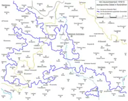 The territory was by no means geographically or economically uniform. It even crossed the border between Bohemia and Moravia. Gustav Korkisch in his history of Schönhengstau states that in 1850 the territory included areas of the judicial districts of Gewitsch (Jevíčko), Mährisch Trübau, Zwittau, Hohenstadt and Müglitz in Moravia, and in Bohemia the judicial districts of Landskron, Wildenschwert (Ústí nad Orlicí), Leitomischl (Litomyšl) and Politschka (Polička).[3] However, except for the Landskron district they only belonged partly to Schönhengstgau, which means the region was clearly defined only by its "cultural and national belonging",[4] not politically or geographically.