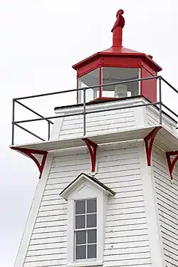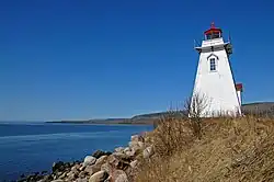 Schafner Point Lighthouse is located in Annapolis County, Nova Scotia, on the north side of the Annapolis Basin facing Goat Island. It was built in 1885. It is known locally as the Port Royal lighthouse. It is a wooden construction with a square plan and tapered sides, supporting a gallery and octagonal iron lantern housing. It is protected by the Heritage Lighthouse Protection Act.[1][2]