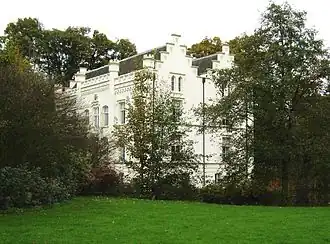 The town's most notable landmark, Scherpenzeel House (Huize Scherpenzeel in Dutch; located at 3 Burgemeester Royaardslaan) began as a 14th-century tower house. In the following centuries, it underwent several modifications. In 1652, it was expanded considerably by Lady Aleyd of Scherpenzeel. In the years 1857–1858, it acquired its present Neo-Gothic form, designed by S.A. van Lunteren, who also designed the surrounding park. At the time it belonged to the Royaard family, who maintained residence there until 1956. In 1975, Scherpenzeel House was declared a national monument and entrusted to the municipality. The building was used as the town hall until 2003.[5]