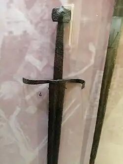 The oldest specimens are estimated to date to the last decades of the 14th century, a period when Serbia was in constant conflict.[3] The Ottoman expansion and conquests saw north- and westward migrations of Serbs, initially within the Serbian state (the Serbian Despotate) and then to the neighbouring Hungary and Venetian Dalmatia.[3] In Hungary, the Serbian population was very active in defending the southern border against the Ottomans.[3] It is for this reason, as well as other historical connections, that it has been assumed that the sword originated in the territory of Serbia.[4] Later production of this type of sword in Hungary and Venice saw it become more typologically uniform.[3]