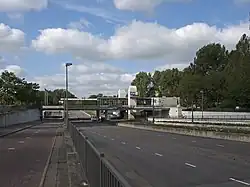 The station is built on the bridge over the Nieuwe Damlaan, one of the principal streets northwest of the city centre of Schiedam.