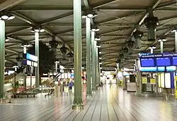 Schiphol Airport station is a major passenger railway station in Haarlemmermeer, Netherlands, beneath the terminal complex of Amsterdam Airport Schiphol, operated by the Nederlandse Spoorwegen. The station's six platforms are accessible via twelve escalators and three elevators located in the main concourse of the airport (Schiphol Plaza). The original station was opened in 1978, and the current station in 1995. It connects the airport to Amsterdam and other cities in the Netherlands, as well as to Belgium and France.