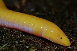 - ^ a b c Zhang, Peng; Wake, Marvalee H. (2009-11-01). "A mitogenomic perspective on the phylogeny and biogeography of living caecilians (Amphibia: Gymnophiona)". Molecular Phylogenetics and Evolution. 53 (2): 479–491. doi:10.1016/j.ympev.2009.06.018. ISSN 1055-7903. PMID 19577653.