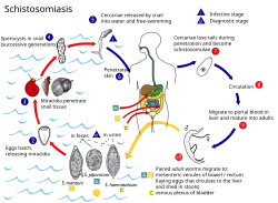 - ^ Schwetz J (1956). "Some new Comparative Investigations on Three Physopsis Borne Schistosomes: Schistosoma Haematobium, S. Bovis and S. Intercalatum 1". The American Journal of Tropical Medicine and Hygiene. 5 (6): 1071–1085. doi:10.4269/ajtmh.1956.5.1071. ISSN 0002-9637. PMID 13381883.
