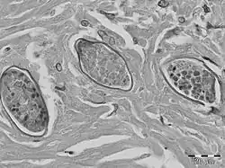 Among humans exposed to this parasite the lifetime incidence appears to be 5–10%.[3] The symptoms are unclear, because the symptoms have never been reported. The disease has been little studied and it is currently considered to be a relatively minor public health problem.