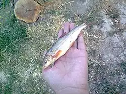 Schizothorax is a genus of cyprinid fish found in southern and western China, through northern South Asia (Himalaya) and Central Asia, to Iran, with a single species, S. prophylax, in Turkey.[1][2][3] They are primarily found in highland rivers, streams and lakes, although a few species occur in lower-lying locations, like Lake Balkhash and lakes of the Sistan Basin.[1][2][4][5] Their scientific name means "cloven-breast", from Ancient Greek schízeïn (σχίζειν) 'to cleave' and thórax (θώραξ) 'breast-plate' (see also thorax). The western species are typically referred to as marinkas from their Russian name marinka (маринка), while the eastern species are usually called snowtrout. Although they do resemble trouts in habitus this is merely due to convergent evolution and they are by no means closely related apart from both being Teleostei: Cyprinids are in the teleost superorder Ostariophysi, while trouts are in the superorder Protacanthopterygii. Their ancestors must thus have diverged as early as the Triassic, more than 200 million years ago.