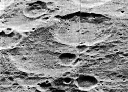 Schlesinger is a lunar impact crater on the far side of the Moon. The crater Esnault-Pelterie overlies the western part of the rim and the outer rampart of that crater has covered about half the interior floor, leaving a crescent-shaped feature. To the south-southwest of Schlesinger is the crater Von Zeipel and to the southeast lies Quetelet.