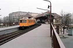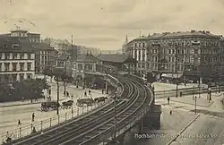 The exceptionally richly designed station opened on 18 February 1902, on the first U-Bahn line erected by the Siemens & Halske company (the Stammstrecke). On 11/12 March 1945, this station was directly hit, and the track area was severely damaged. During the division of Berlin after 13 August 1961, the station was the eastern terminus of the U1, as the final station, Warschauer Straße, was in East Berlin. The link was reopened in 1995. An intermediate station at the Spree river, Stralauer Tor, had been destroyed in 1945 and never reopened.