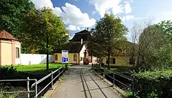 At the entrance on the left, opposite the gatehouse, is the Chapel of the Holy Cross. It was built in 1732, before the castle was built, and then became part of the castle complex. It was connected to the north wing of the castle during renovation work around 1748 and served as a place of worship and prayer for the castle's lords. From 1811 it was used as the castle kitchen, having already been stripped of its furnishings. After the castle kitchen was moved back into the main building, the chapel was renovated and used as a place of worship by the Dreisamtal Protestant community from 1958. From 1979 to 1984, it was the church of the Orthodox congregation of "St. John the Baptist". After renewed profanation and subsequent restoration, the Freiherrlich Gayling von Altenheimsche Gesamtarchiv was housed here.[10] After the archive was taken over by the Freiburg State archive, the chapel was restored to its original purpose as the Sickingen-Kapelle on October 29, 2017. However, it is now open to all faiths at the request of the landlord. A new bell was also cast.[11]