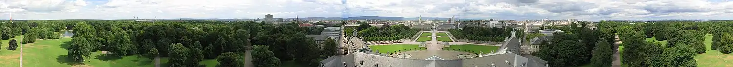 ![]() Aerial view of the Schlossgarten, Karlsruhe palace and the city itself