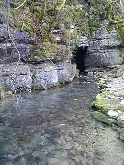 Schmiech is a small river in the Swabian Alb, Baden-Württemberg, Germany. Its source is a karst spring. It flows into the Danube in Ehingen.