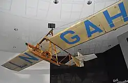 A tail fin was provided by the fabric covering that enclosed the near-triangular section of the rear fuselage, positioned between the rudder hinge, the upper and lower beams, and the diagonal strut connecting them.[1]