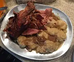 Schnitz un knepp, often spelled Schnitz un Gnepp or Schnitz und Knepp,[1] is a popular main dish item in the cuisine of the Pennsylvania Dutch in the United States.[2] It is basically a dish of ham or pork shoulder with dried apples and dumplings.