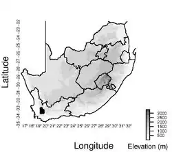 Schoenus albovaginatus has been observed growing in high mountain sites (> 900 m) in the southwestern mountains of South Africa, specifically in the Koue Bokkeveld and Hex River Mountain areas.[1] One collection has also been made in the area near Worcester.[1]