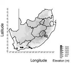 | Documented collection localities in South Africa | |